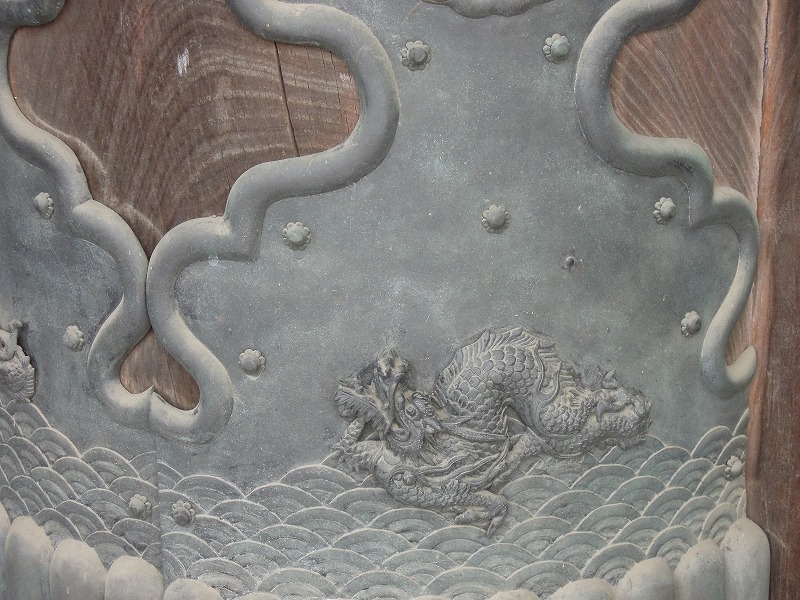 青海波の中を竜が飛んでいます。かっこよいですね。