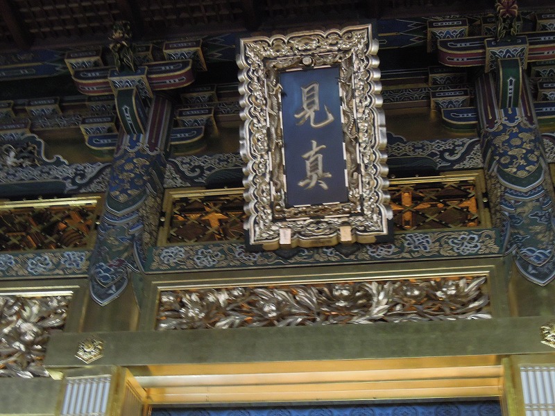 見真の扁額。「けんしん」とは智慧(ちえ)によって真理を見きわめることだそうです。浄土真宗の開祖である親鸞は明治天皇から明治9年に見真大師(けんしんだいし)という諡号(しごう)を与えられています。