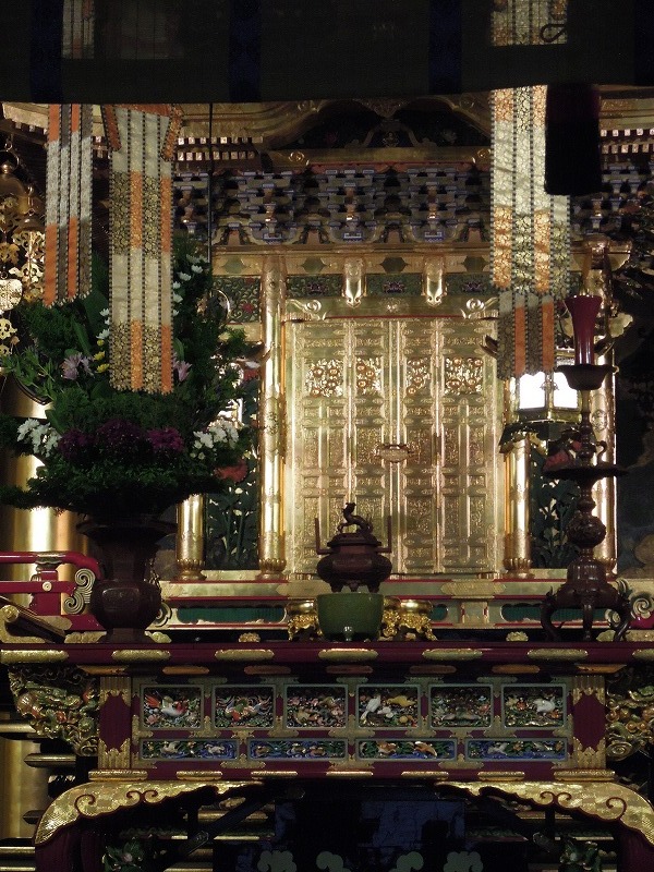 中も豪華絢爛でキンキラ金で美しいのですが、影が金の光をにぶくして落ち着いた美しさへと変えています。やはり金は薄暗い中で見るのが美しい。
