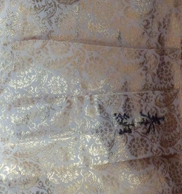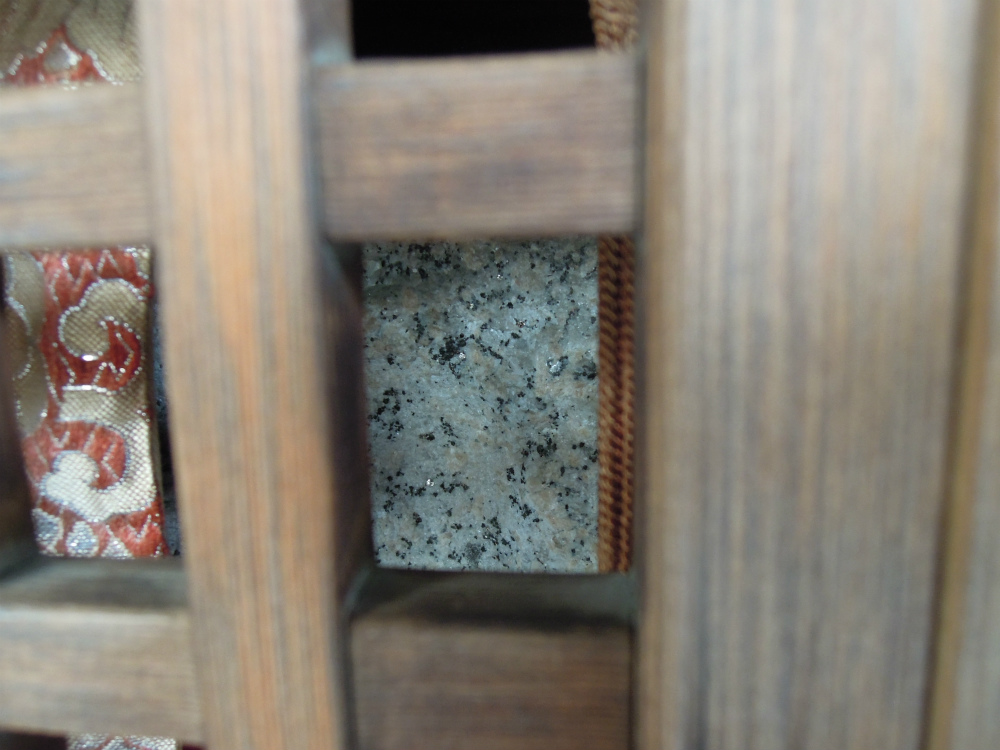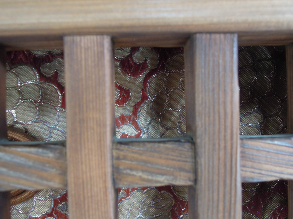 戸帳の金襴は朱地の桧垣地紋菊桐唐草でございます。この紋様はほんまに安定して好まれています。ほんまによう見かけますわ。
