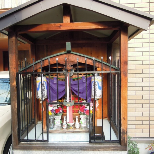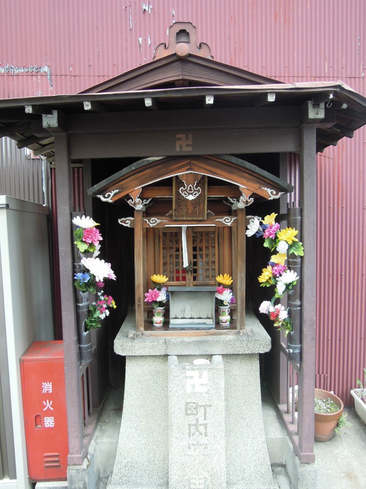 そうして、今日の金襴はお地蔵さんにかかっておりました。インベーダーゲームのような「町内安全」の文字が良いですね。