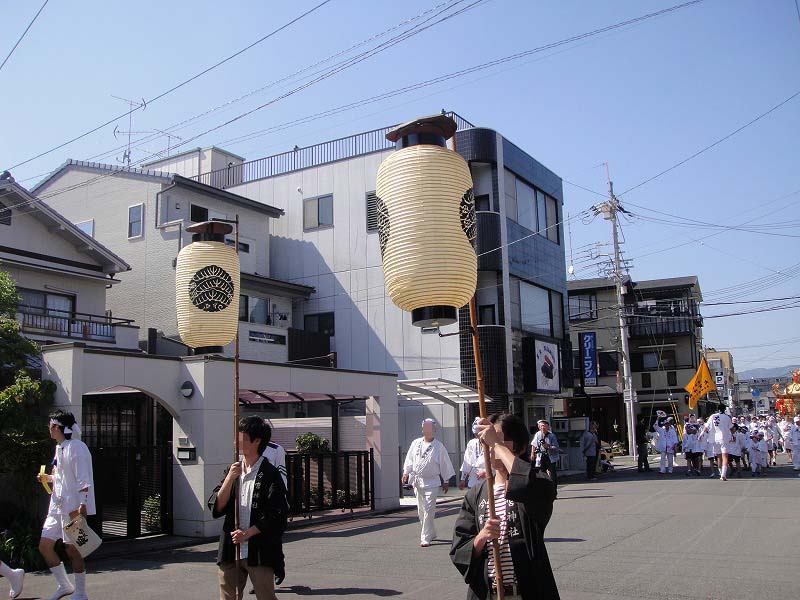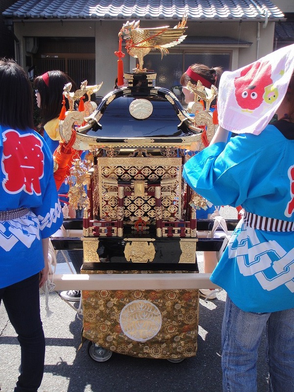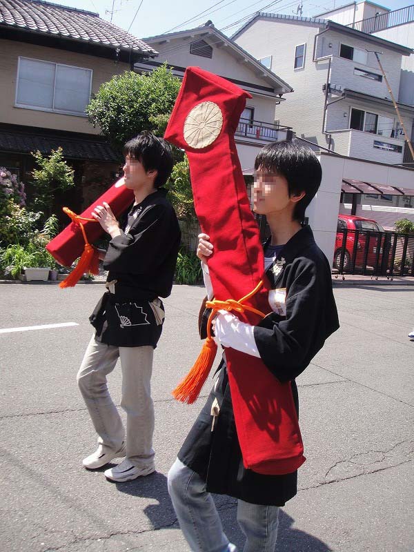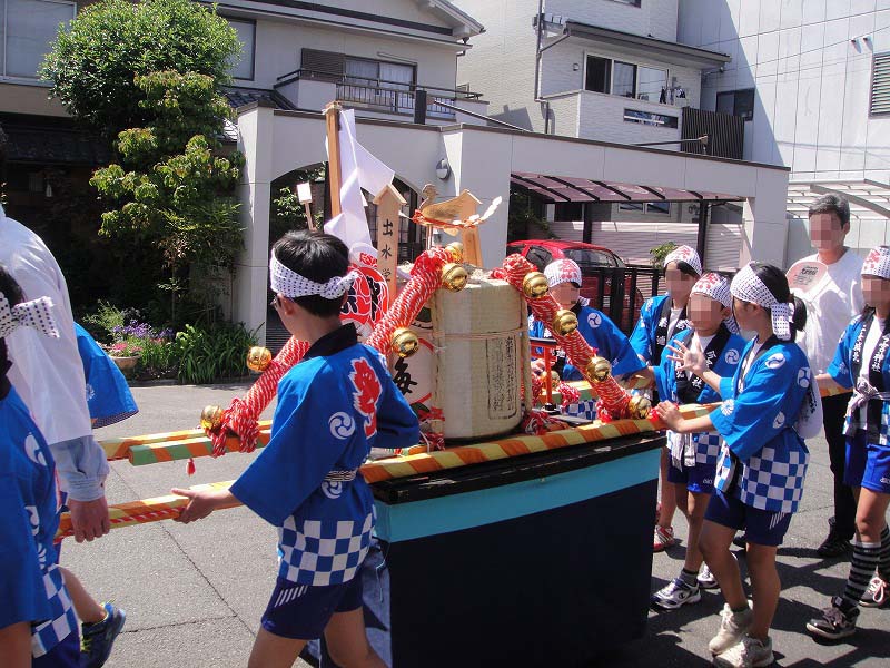 子供神輿。この道は、ずらずらと行列が通り過ぎるだけだったので、威勢の良い「わっしょいわっしょい」は見られなかったんです・・・。