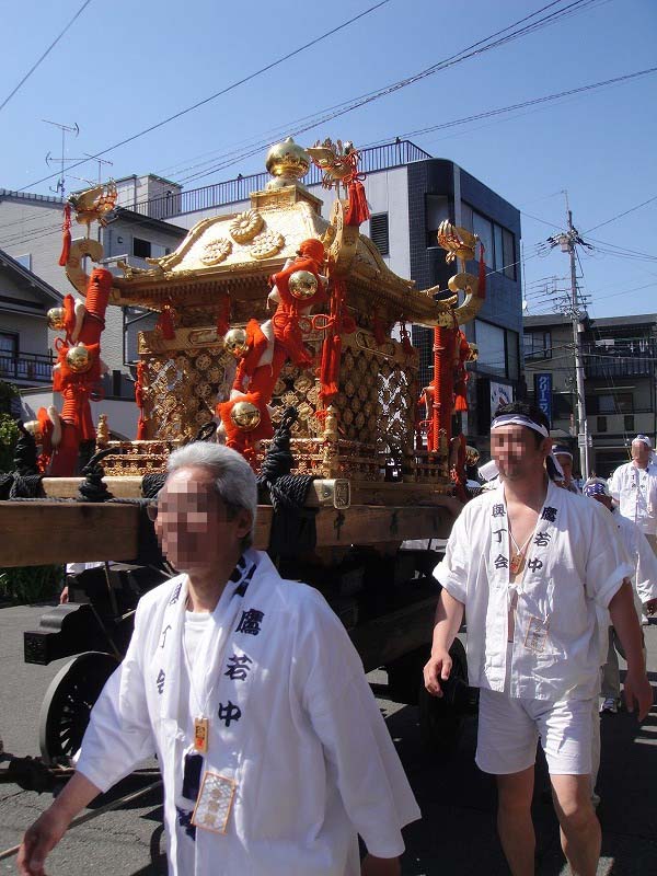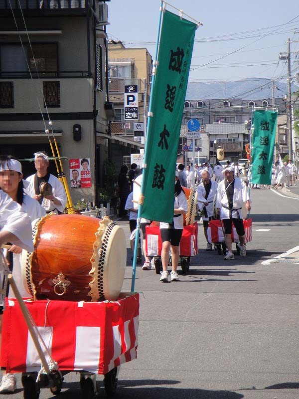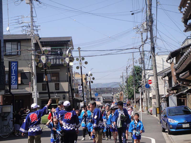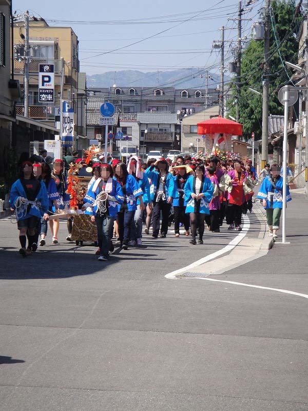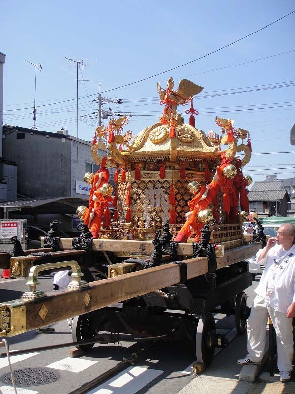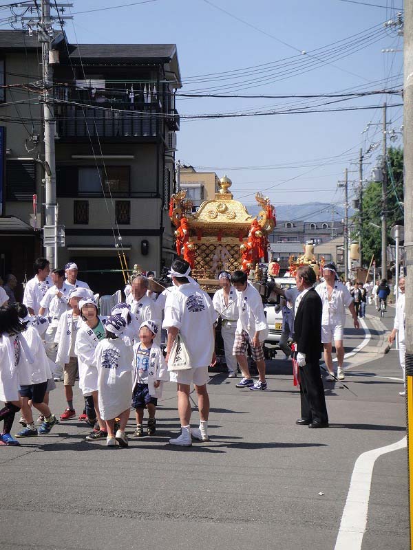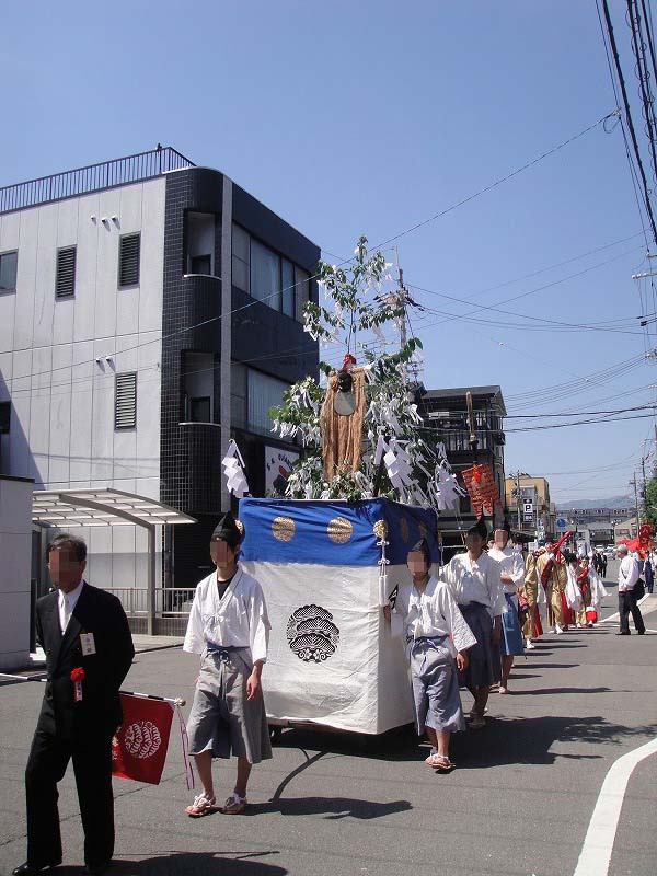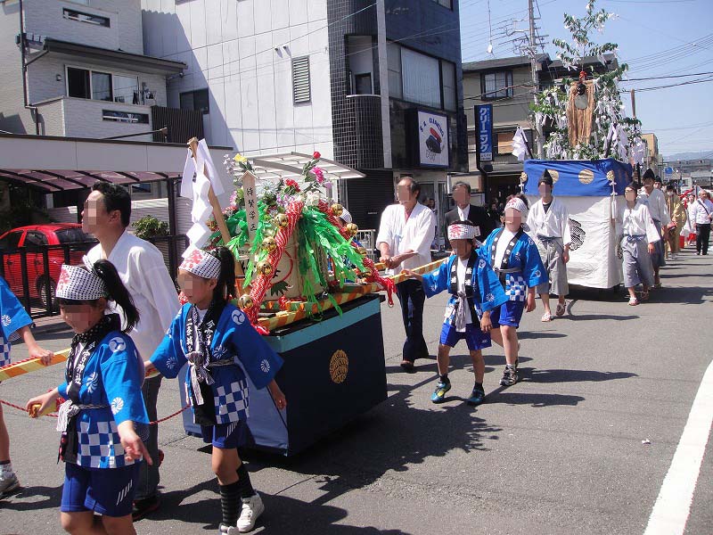 御祭りでは5月1日に神輿が出て、五日に神幸祭(おいでまつり、ともよばれる)(この5日から15日まで「お旅所(今宮さんのお旅所は大宮通に在ります)」と呼ばれる場所に神様が休憩してはるのです)、15日(今はこれに近い日曜日)の還幸祭(おかえりまつりともよばれる)。19日に神輿を納めてお開き。