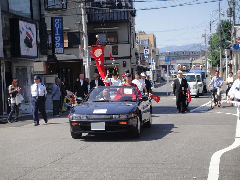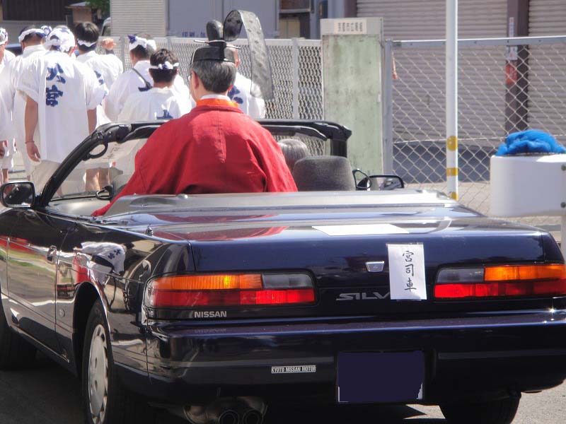 殿は神主様。オープンカーで登場です。