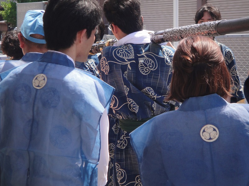 さすが初夏のお祭り。目にも涼やかな紺の裃に浴衣。葵のご紋。浴衣も葵です。