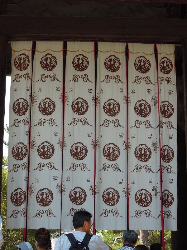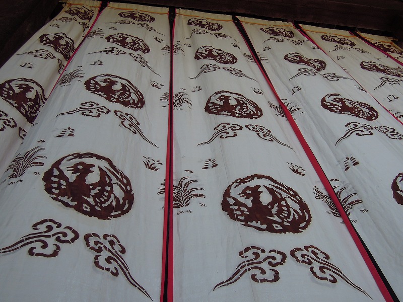 この巨大な暖簾?は雲に鳳凰:染物です。