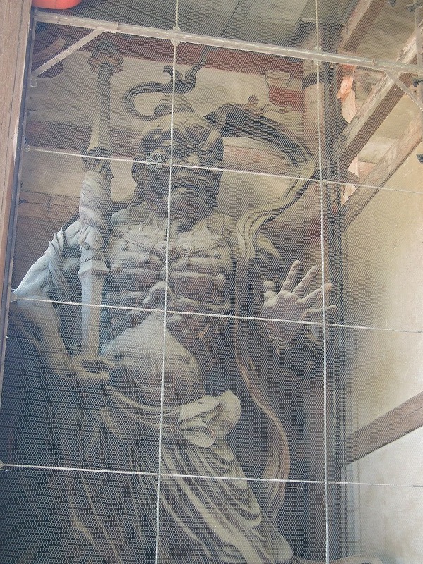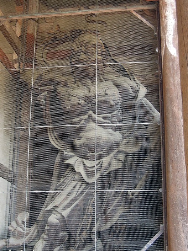 中の宝物も気になりますが、この表現、すばらしいですね。高さ8.4メートルもあるそうですが、この布!運慶、快慶は私でも知っている有名仏師ですが、これは、素晴らしい。創建当時は網などかかっていなかっただろうし、より迫力があったんでしょうね。