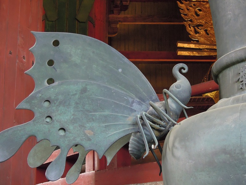 大仏殿の中でも鬼門に当たるところにあるそうで、その悪い邪気を祓うというか、停滞しがちな悪い空気を逃がすために柱に穴を開けたという説があるそうです。我が西陣にある清明神社の陰陽道ですね。京都では普通の家でも鬼門をちゃんと設けている家が多いです。我が家にもあります。