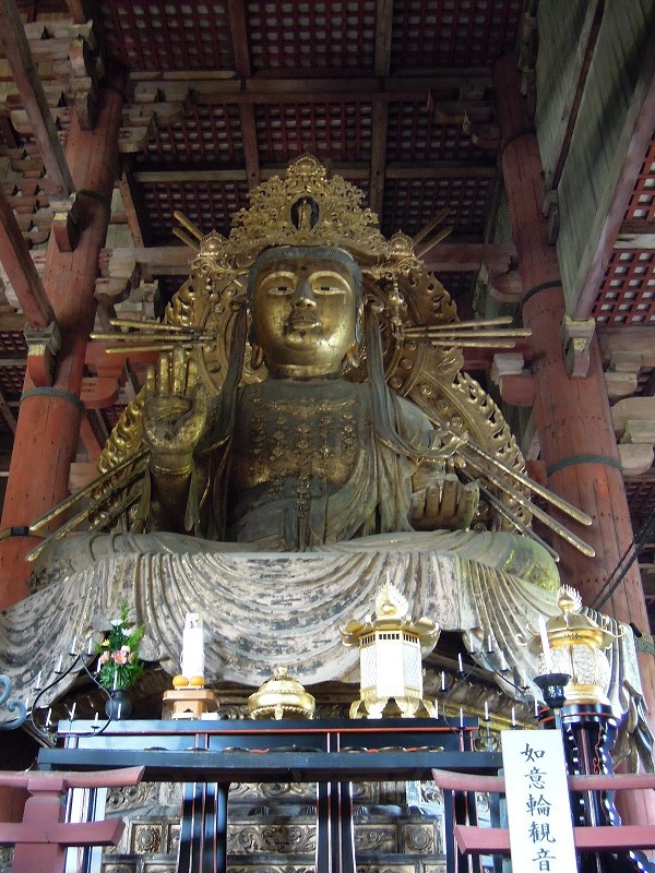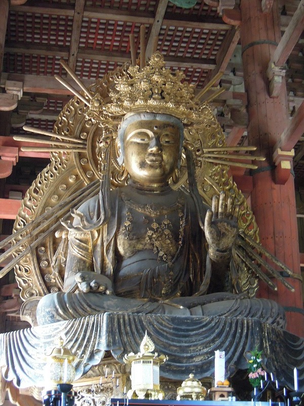 大仏様はその本尊で、盧舎那仏あるいは毘盧舎那仏と呼ばれています。あの大きなお手で、不幸な人や悩みのある人をのこらず救い上げてくださるという、慈愛の心に満ちた仏様です。