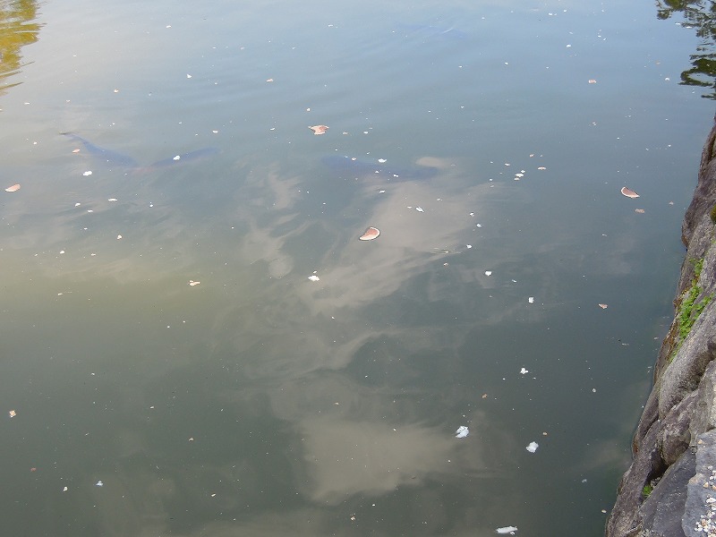 帰り道に鯉にあげようとお麩を購入しましたが、鯉もおなかいっぱいで全く食べてくれず、お麩や鹿せんべいが池にぷかぷかと浮かんでいました。