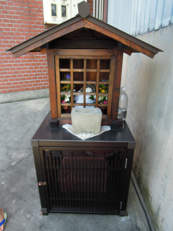 今日もお地蔵さん見物記をお届けいたします。今日は二条川端のお地蔵さんです。なんだかモダンですね。台座が珍しく市販品の雰囲気を漂わせています。