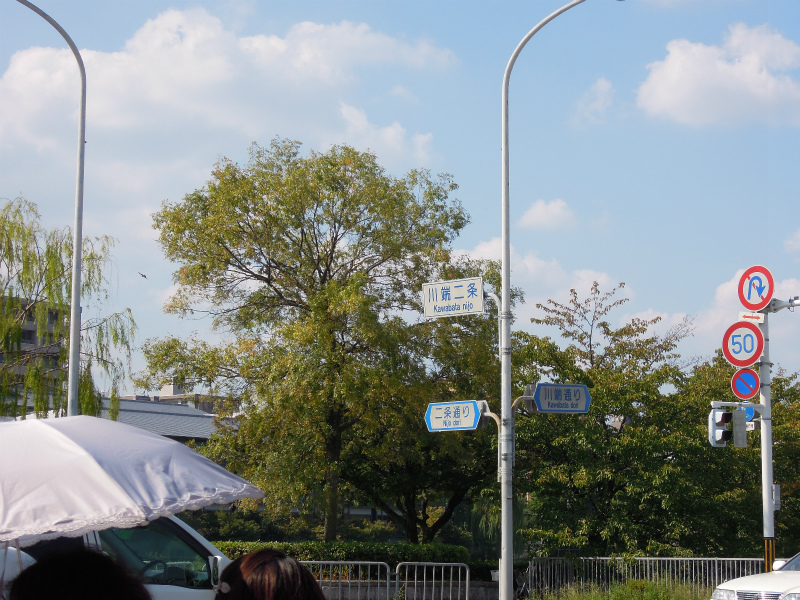 青空。夏の写真ですね。京都は風光明媚な美しい町です。御出であそばせ。赤信号の下にチラッと見えるのはホテルフジタの後に建ちましたリッツ・カールトン。光と陰を巧みに生かした町家を模していたり、色々なところに西陣織や七宝文様など京都の伝統文化を取り入れた建築になっています。是非、御来京の際はお食事なり、ご宿泊なりどうぞ。