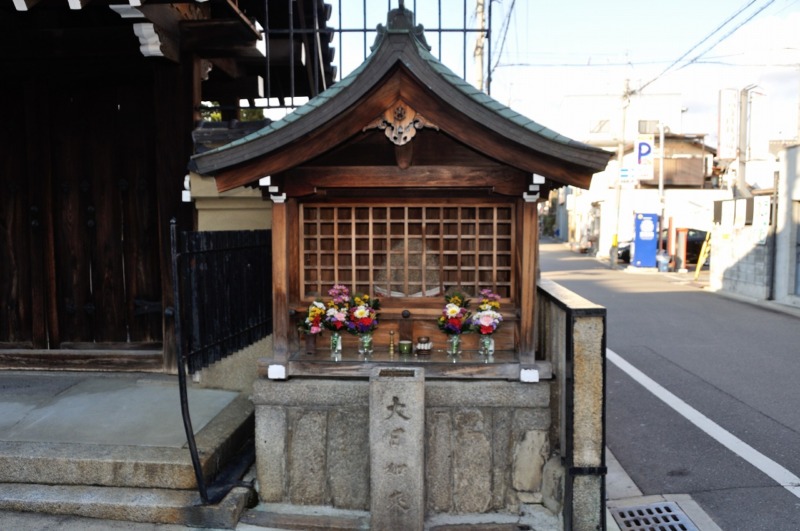 お寺の御門が大きいので小さく見えますが立派な祠です。
