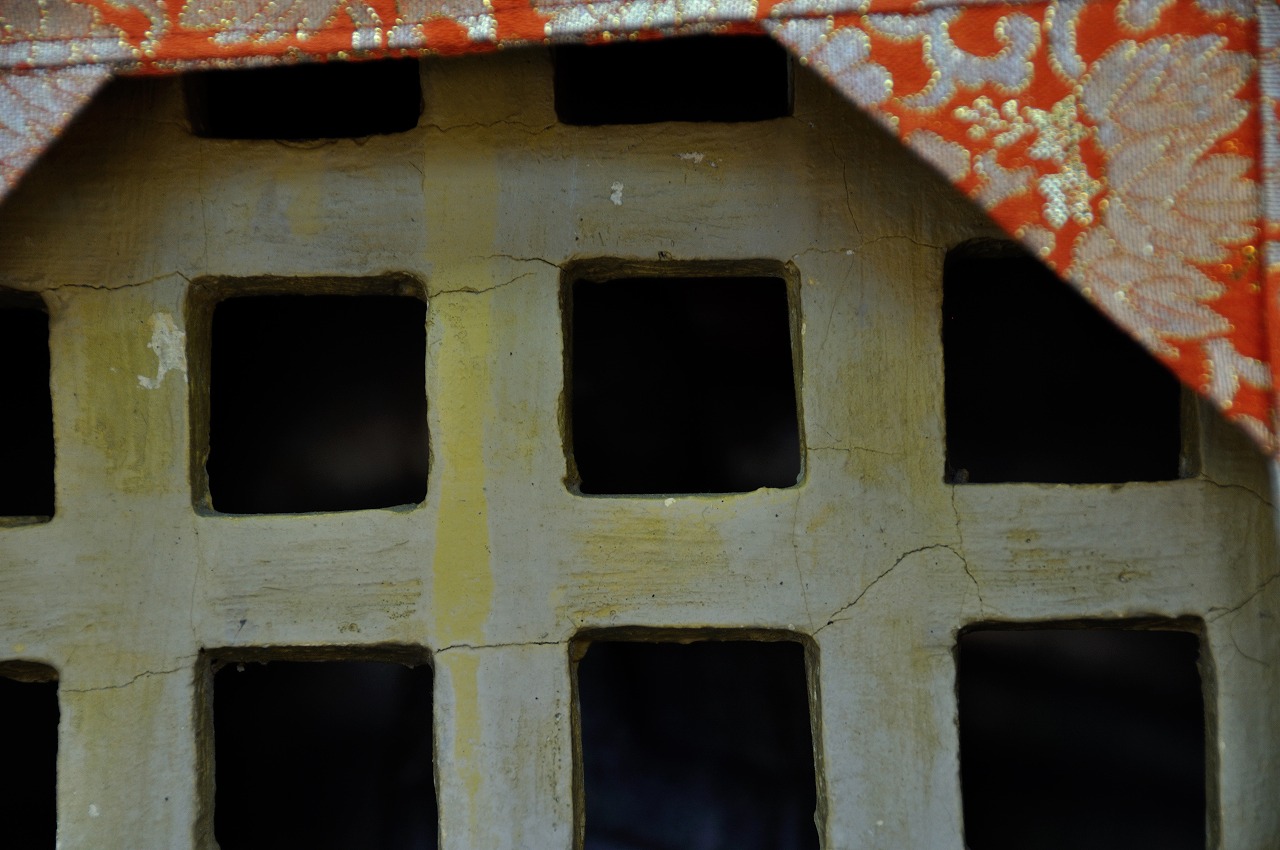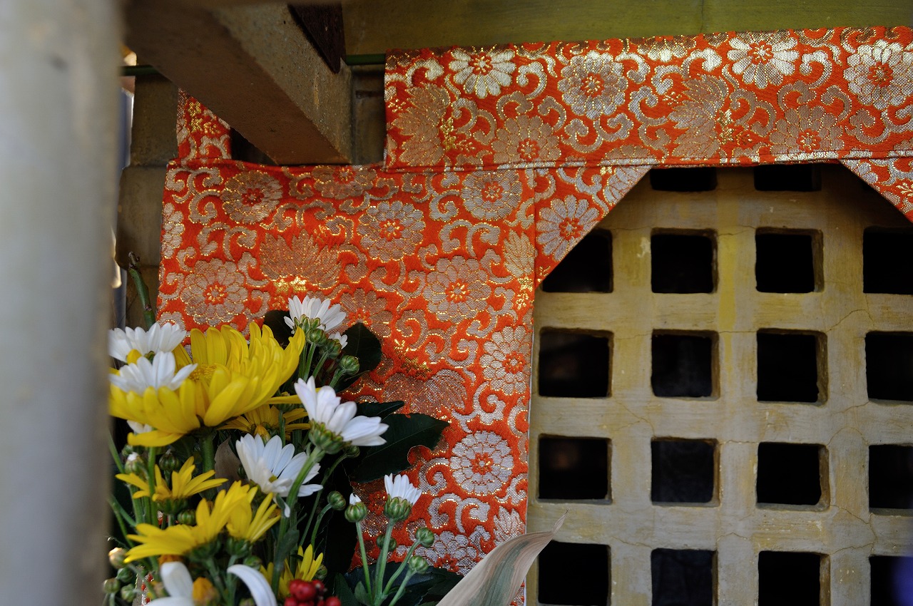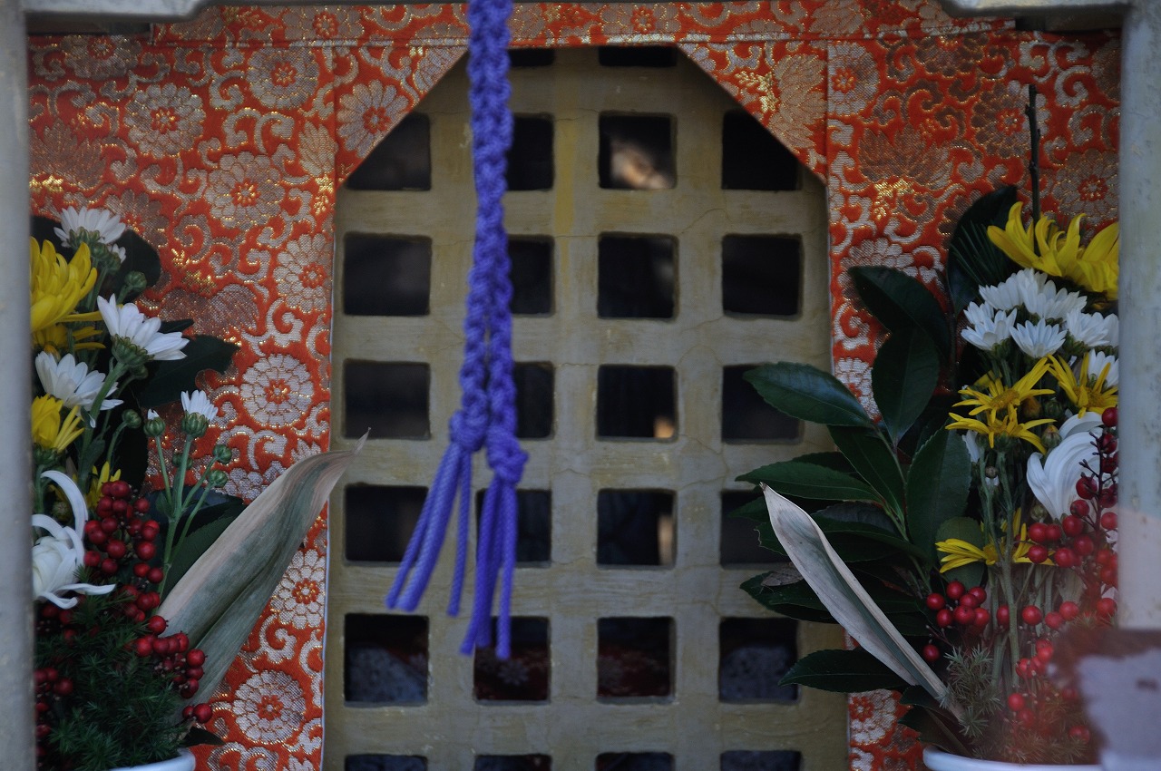 でもこういうお地蔵さんは硬派だと思います。黒塗りの鉄柵が硬派に感じさせてくれるのでしょうか。でも・・・金襴発見。菊の紋様と唐草紋様で「菊唐草紋様」。