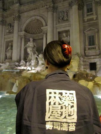 トレビの泉前。築地林屋海苔さんの海苔はとても美味しそうな海苔ですよ!!