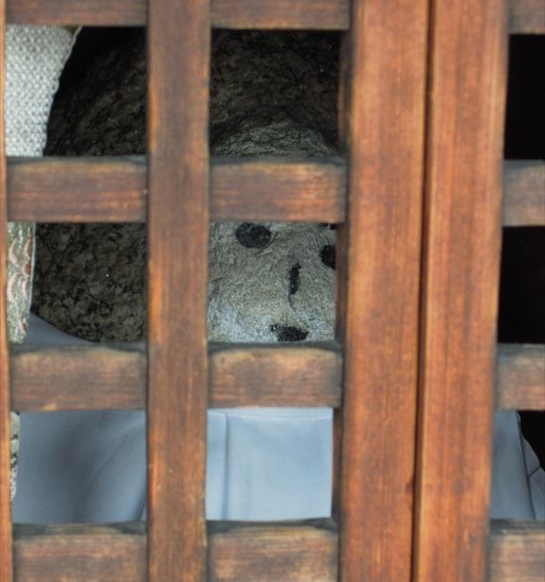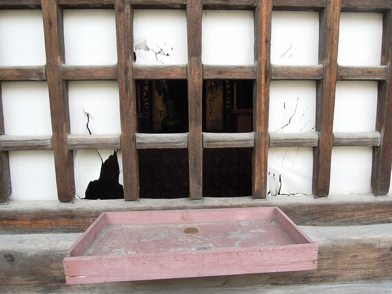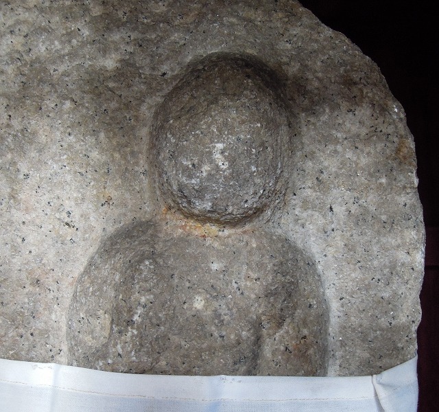 隙間から中のお地蔵さんがちらりと見えます。よく見てみましょう。