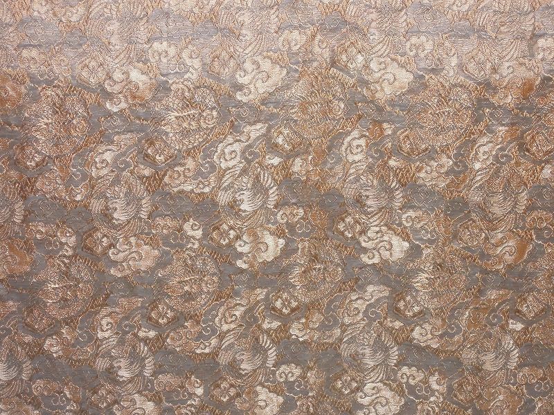 金襴発見でございます。日光退色が進んで元の色がようわかりませんね。「散雲に鳳凰紋様」です。