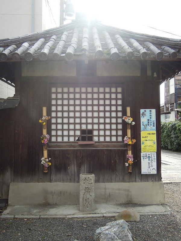 今日の金襴織屋の「金襴探し」は北区出雲路俵町の西光寺の門口にありましたお堂。浄土宗の天龍山 西光寺。年季を感じますが立派なお堂です。一体いままで幾人の人が前を通り、手を合わせてきたのでしょう。