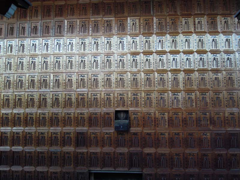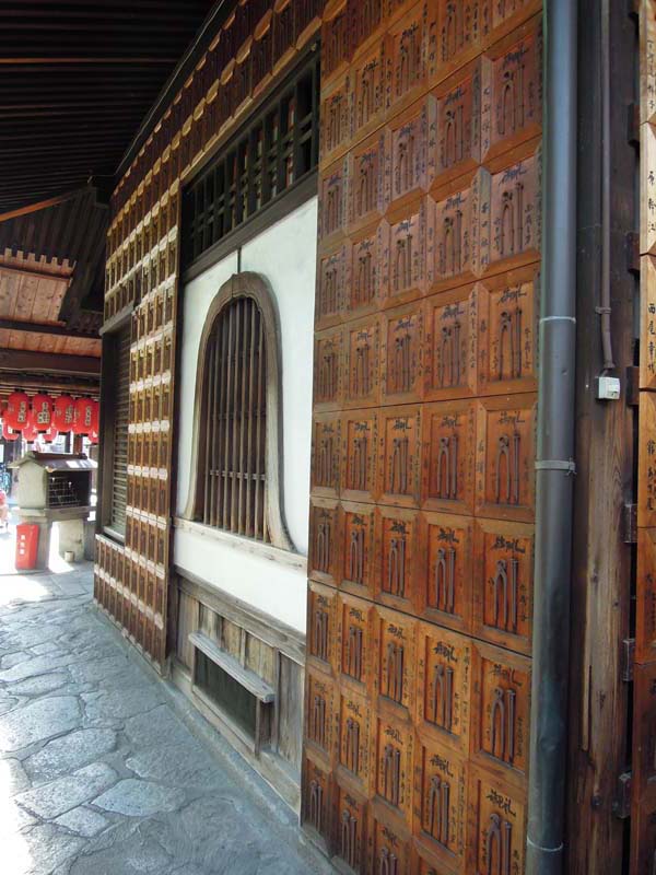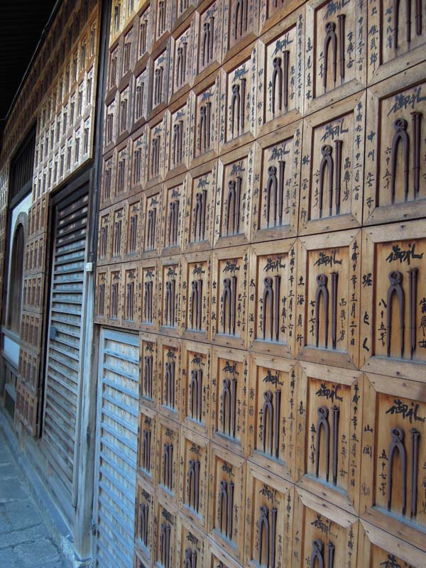 奉納者の名前を書いた釘抜きと釘セットがずらりと壁に並んでいます。