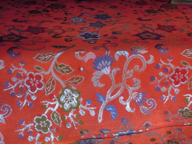 朱色の金襴ですね。ほの暗い中で光っています。日本の美にはこの陰陽が大事です。金襴を引き立てるのは影です。
