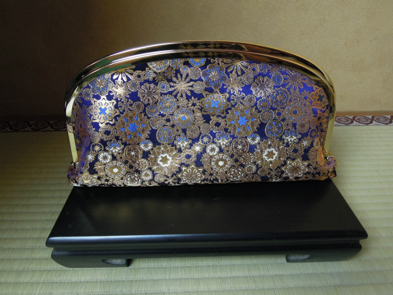 西陣金襴正絹 雪輪紋様 がま口クラッチバッグ 正面