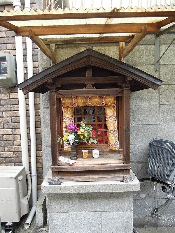 今日ご紹介するこのお地蔵さんは「新町武者小路下ル路地入ル」にあって、この意味は「新町通」と「武者小路」という道の交差点を下がって(南下して)路地を入ったところという意味です。