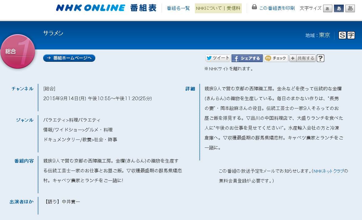 西陣で金襴を織っている織屋でございますが、NHKのサラメシに出演させていただく事になりました。織屋がサラメシ?