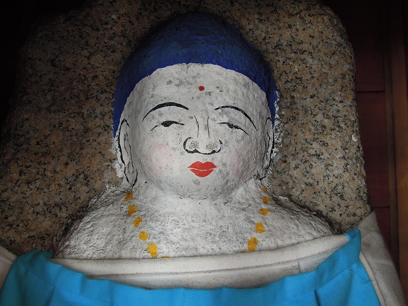 うわあ。私の母には全く似てはいませんがなんだか「おかあちゃん!」と声をかけたくなってしまうお顔です。如来っぽいのに首飾りをしている点など「絶対に近所の人が御化粧をしはったにちがいない・・・」と疑り深くなっている私・・・。でもお地蔵さん自体はとてもCUTE☆