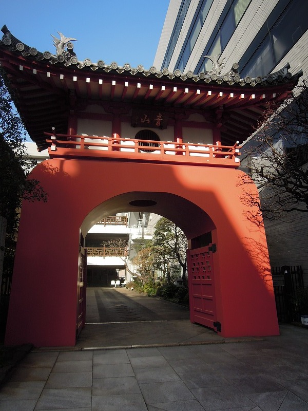 青山墓地の近くだから「キラー」とコシノジュンコさんに名づけられてしまった(キラー通りというよりデッドロードですよね。)なんともすごい名前の道、外苑西通り沿いにこんな赤い異国情緒溢れる門があるんです。
