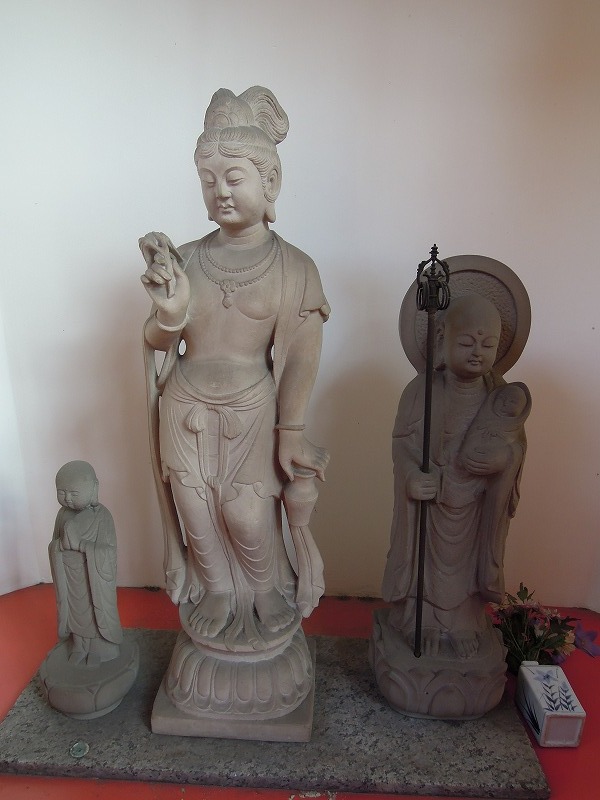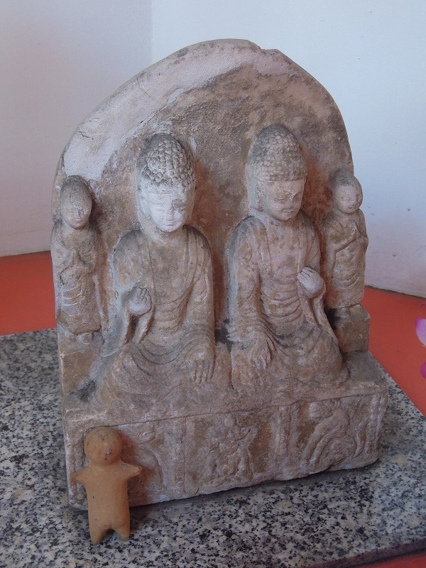 このお二人は飾り物の少なさから如来だと思うのですが、如来が二人揃うのかしら。私の乏しい知識では解りません。そうして前にいるさるぼぼみたいのは何かしら・・・。