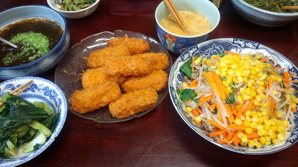 今日の織屋の賄いは、カニクリームコロッケ、もずく酢、もやし、人参、三つ葉のサラダ、その他諸々でございました。