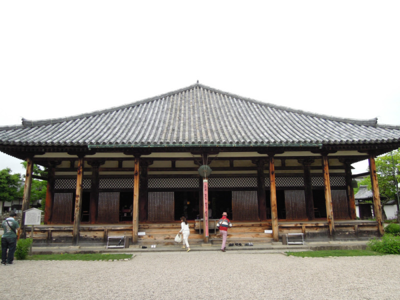 昔と比べて小さくなってしまった元興寺ですが、こちらの国宝となっている元興寺極楽堂(極楽坊本堂・曼荼羅堂)。阿弥陀堂建築の特色である「正面は東向き」という大事なポイントがあります。こちらは内部の見学が可能で(立派な金襴も掛かっていましたよ。撮影禁止です)、東大寺の大仏殿のようにぐるりと回って見学する事ができます。