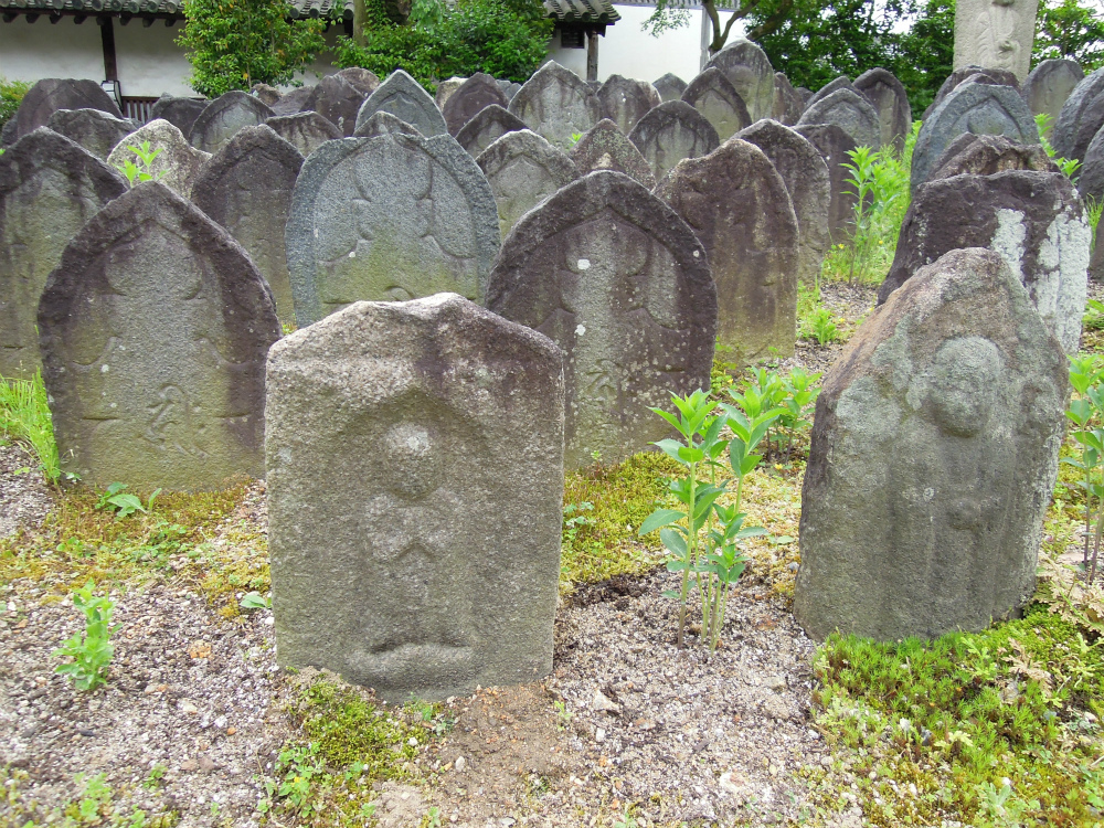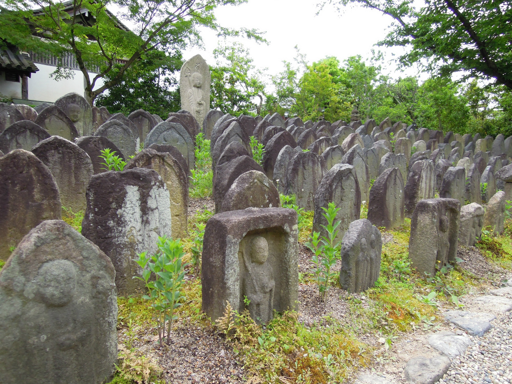 こちらには2500基程の石塔、石仏が置いてあります。これらはお寺や周りの地域から鎌倉時代末期から江戸時代中期に集まってきたもので、人々が極楽浄土への往生を願って徳を積むために造った供養の仏塔。お地蔵さんとして近隣で8月23日、24日に地蔵会を行い、祖先の供養、家内安全を願って万灯供養が行われるとの事です。