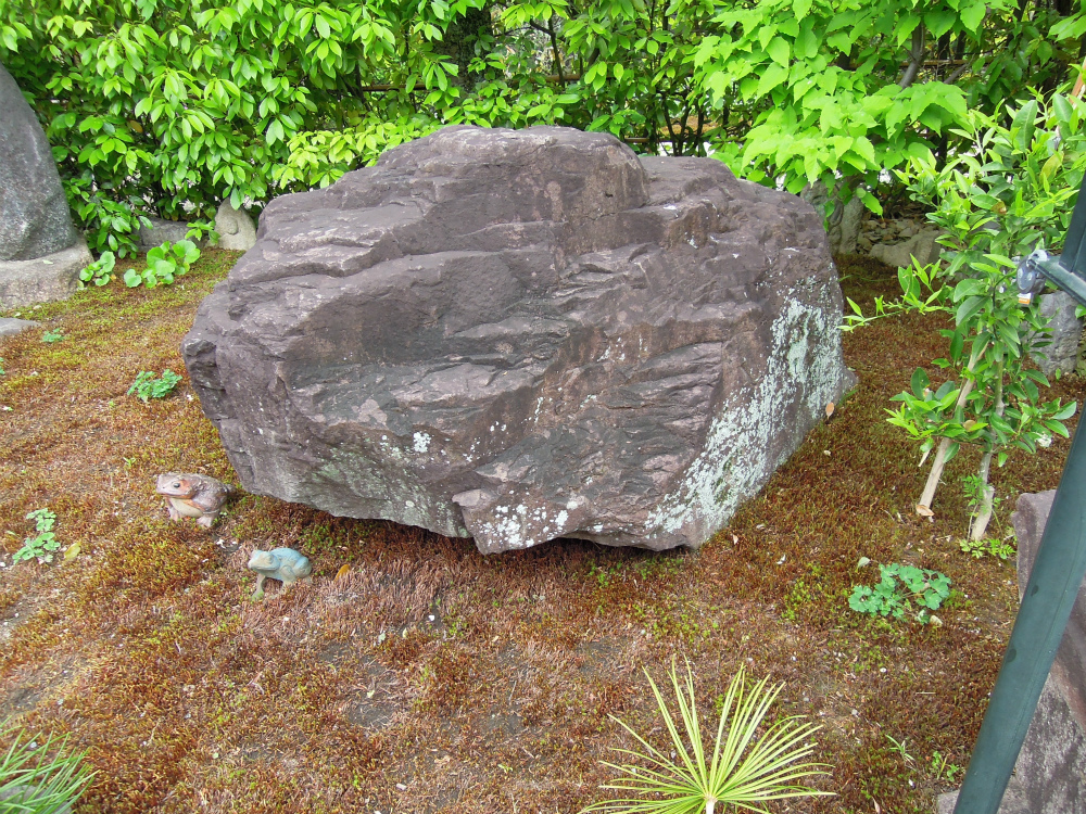 豊臣太閤秀吉が気に入り、大阪城に運び込み大阪城落城時には、蛙石の下に淀君の亡骸を埋めたとも言われているそう。近代では乾櫓(いぬいやぐら)の対岸にあったそうです。その頃は堀に身を投げて死んだ人もこの石の下に帰るといわれたそうです。江戸時代の奇石を集めた「雲根志」にも掲載済み。元興寺に運ばれたのが昭和31年。戦争のごたごたで行方不明にもなっていたりと奇遇な石生です。なんで石が行方不明になるんやろ。そんな器用に持ち運び可能なものでもないのに・・・。