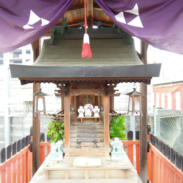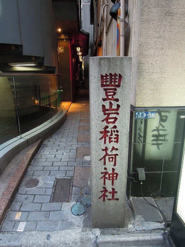 豊岩稲荷神社 祭神は倉稲魂命(うかのみたまのかみ)穀物の神様です。たぶん女性。伏見稲荷大社の主祭神なので稲荷神社として祀られます。本能寺の変で有名な明智光秀の家臣であった安田作兵衛の奉斎=つつしんでお祀りする事、によりはじまるといわれています。大正から昭和初期の二枚目歌舞伎役者市村羽左衛門が篤く拝んだそうです。江戸の時代から縁結び、防火の神様として庶民にも親しまれたそうな。