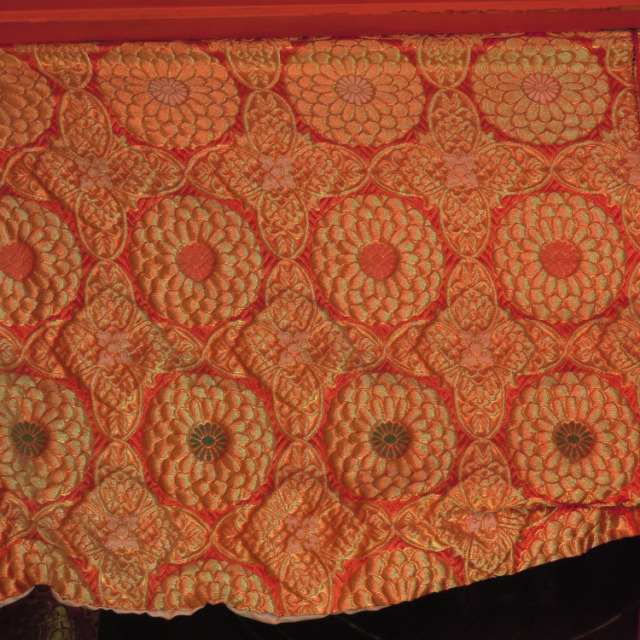 我が社は金襴織屋なのですが、金襴は一体どういうところに使われているのか?という興味から金襴を探しています。金襴は神社仏閣の宝物になるものなので普段は中々使われていません。うちの社内以外で金襴を見ることは適わないのだろうか・・・。しかし、社内には仕立てられた金襴製品はあんまり無いのです。布の状態ばかり。仕立てられたものを見たい!