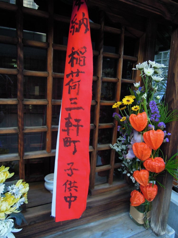稲荷三軒町の子供中。という意味は稲荷さんの近隣の町内三軒の子供会の奉納。