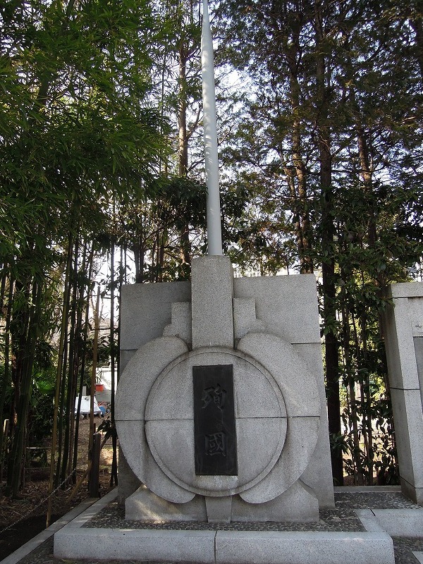 潜水艦の断面を型どった碑。碑面には「殉国」の二字を刻んであります。