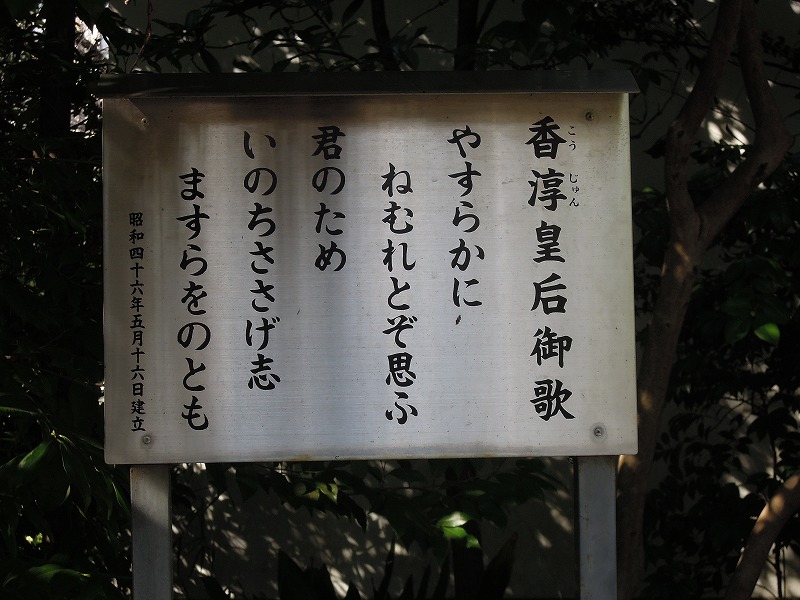 香淳皇后の歌 「やすらかに ねむれとぞ思ふ 君のため いのちささげ志 ますらをのとも」 。香淳皇后とは嵐のような昭和を生きた昭和天皇のお后様です。