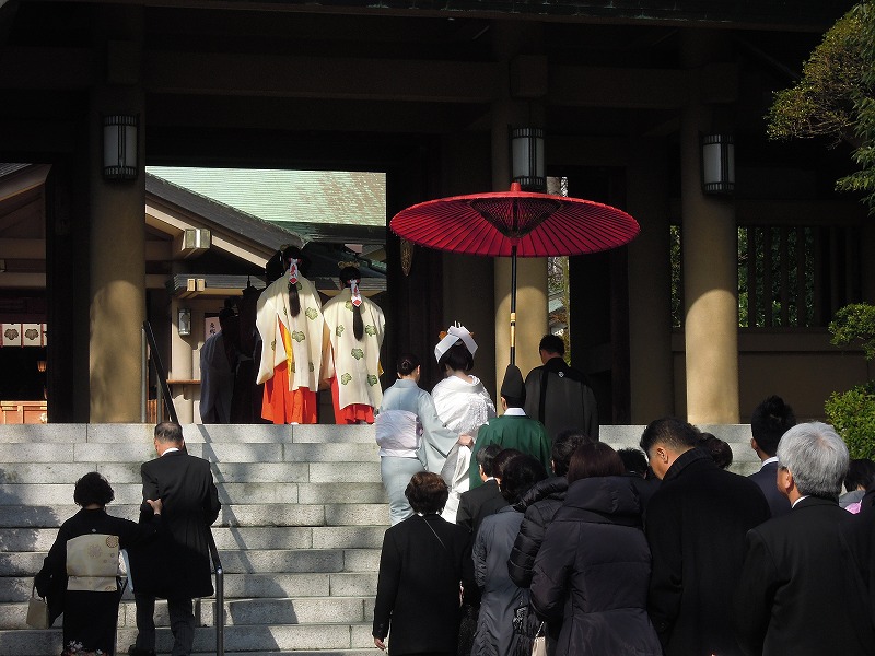 さ、本殿におまいりに行こうかしらと思っていますと、長蛇の列。ものすごい人数の婚礼の列でした。しばらくは婚礼のために本殿は入れないようなので本殿参拝は諦めました。