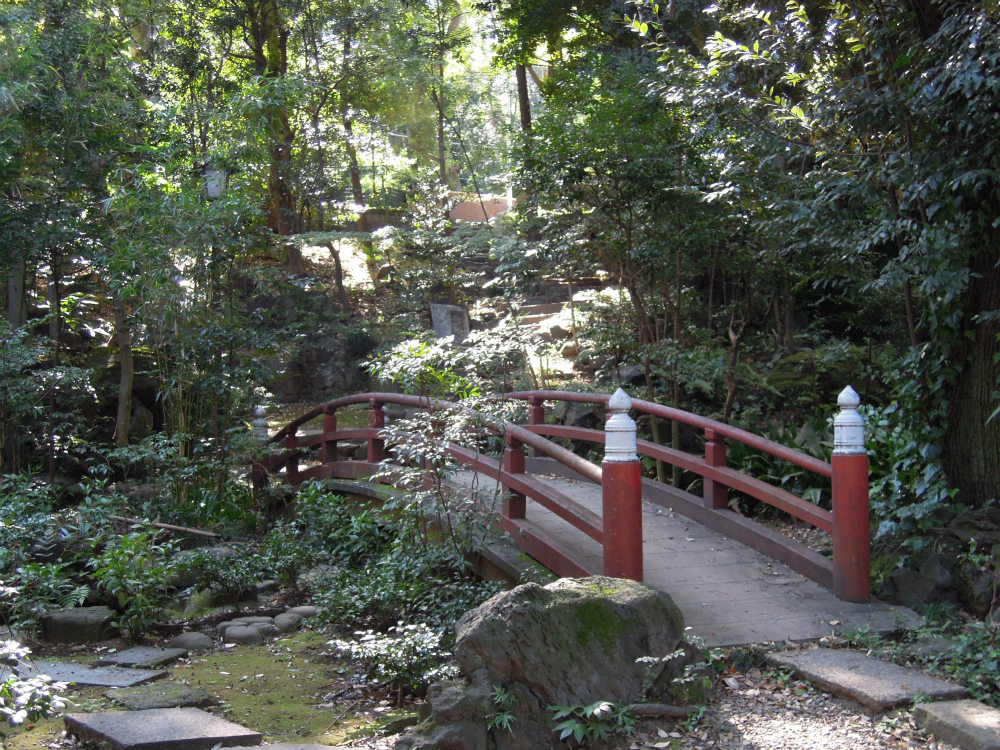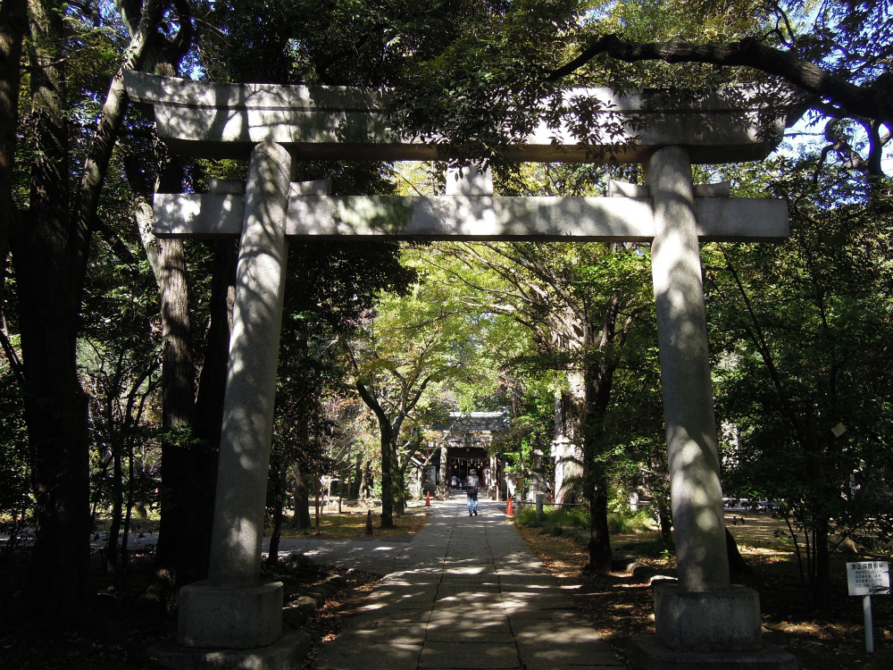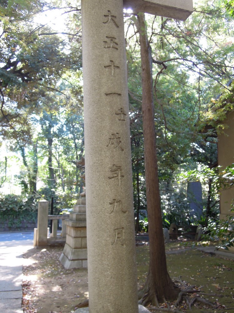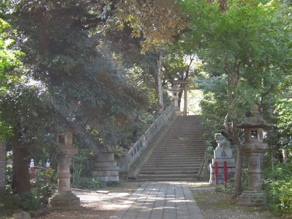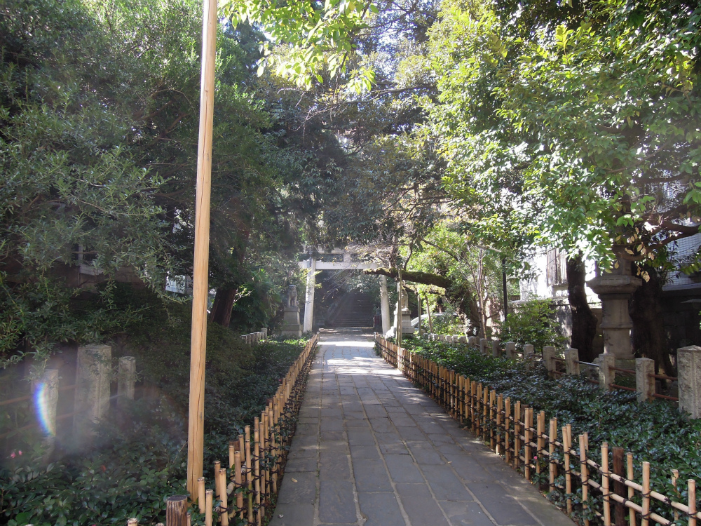 米軍ハウスの変わった建物のすぐお近く。こちらは氷川坂方面からの入り口から入ったところです。東側の一の鳥居が見えます。