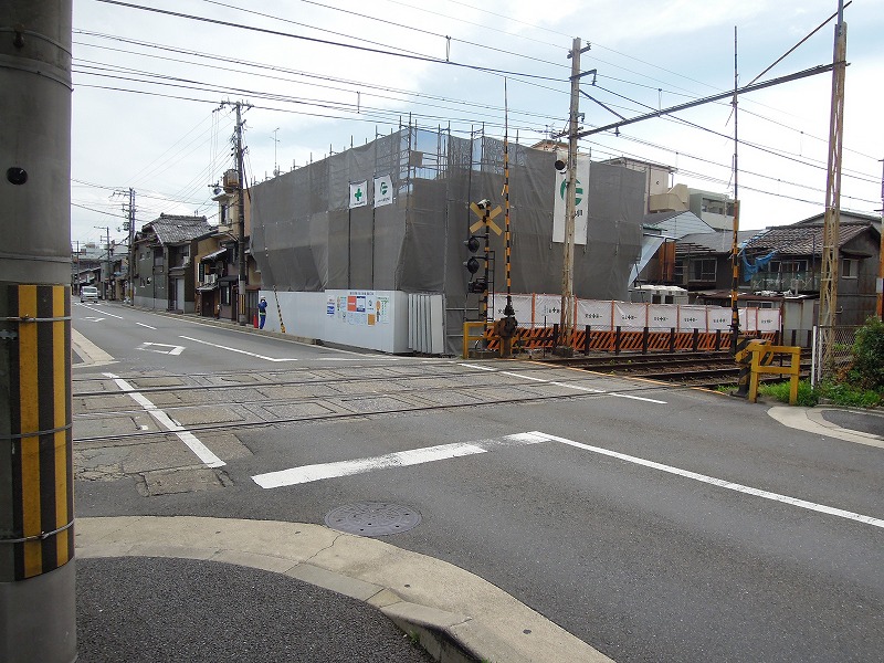 下の画像は坊城通りから嵐電、京福電気鉄道の北側から壬生寺方面を見たところです。
