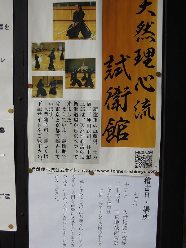 近藤勇の流派「天然理心流 試衛館」は現役です。東京と京都でお稽古してはります。「興味本位の見学はお断り」との事です。