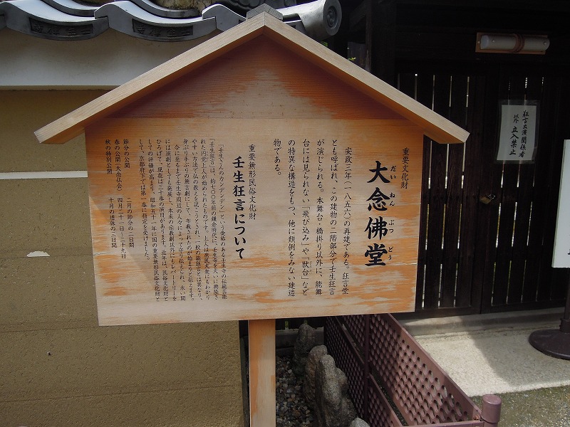 こちらが有名な「壬生狂言」の舞台「大念佛堂」。私、新聞でしか拝見した事ないんですよね。一度実物を見てみたいわ。景気良くカワラケを割るらしいです。