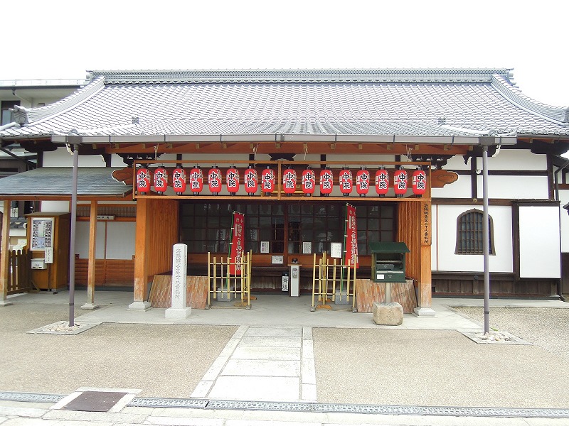 本殿。壬生寺は律宗大本山の寺院。本尊は地蔵菩薩です。開基は滋賀県大津の園城寺(三井寺)のお坊さん、快賢。中世になってから壬生寺を再興した円覚上人による融通念仏の「大念仏狂言」を伝える寺として有名です。