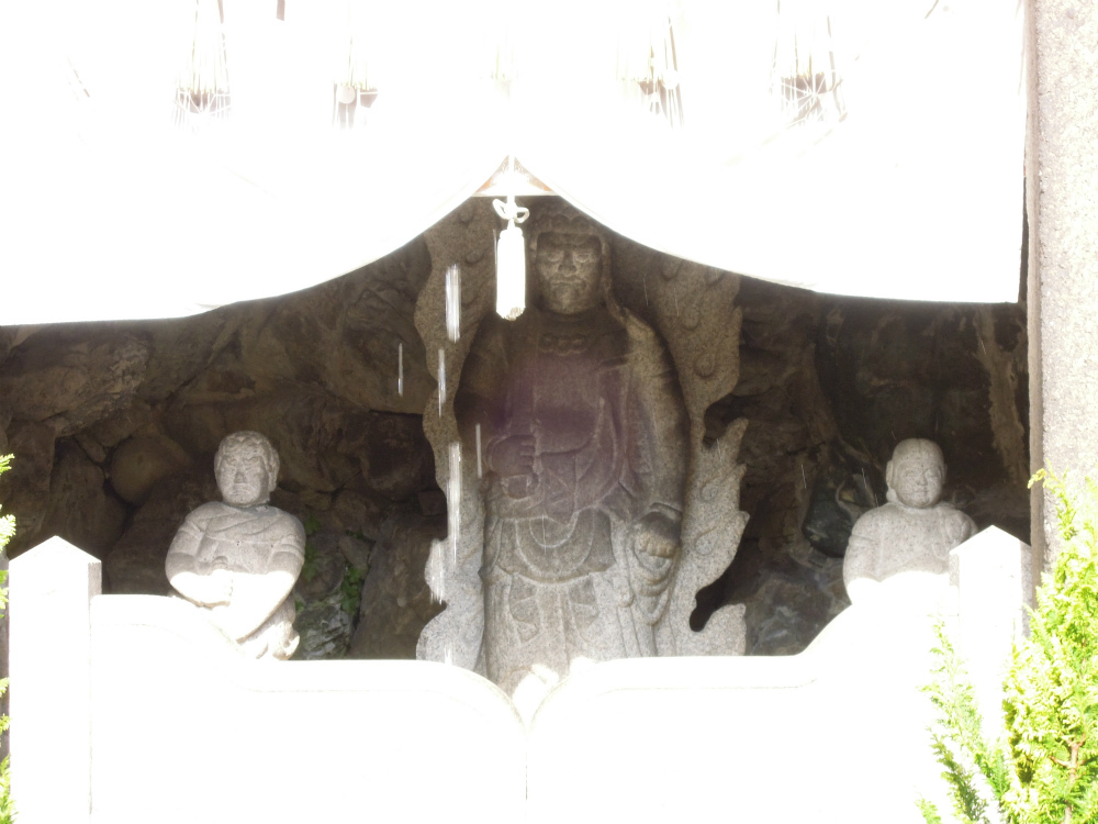 滝の奥にある石窟に石像の不動明王(不動明王は大日如来の化身とされている⦅2024/10/12 「観世音菩薩の化身」と記載していた所、読者からの指摘で修正。ありがとうございます⦆)・八大竜王神などを祀り、今現在も滝行場となっています。