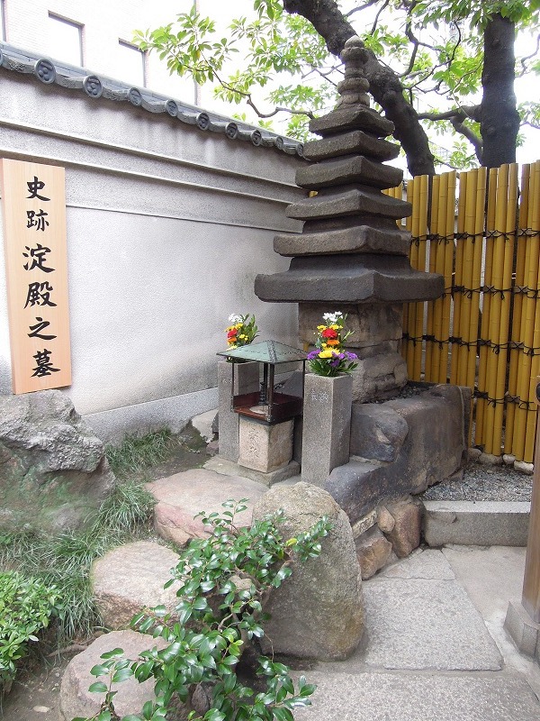 ↓は淀様のお墓。大公秀吉の側室で唯一秀吉の子供「秀頼」を生んだといわれる女性のお墓です。遺骨は、大阪城外の弁天島に一祠を作って埋められたのですが大阪城公園)造成に当り移祀され、このお寺に移ってきはったそうです。