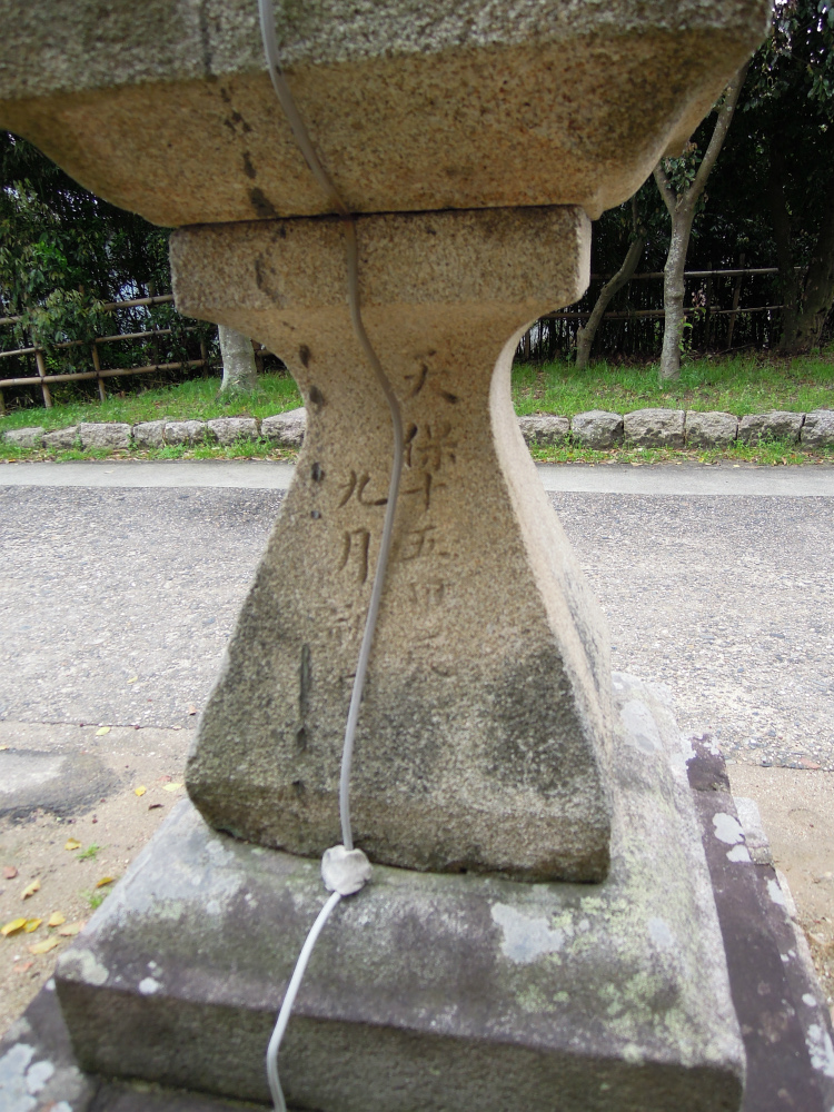 この石灯籠は「天保15年(1844年)」。さすが、奈良。古いものが現役で活躍中。コンセントコードが見えるでしょう。たぶん夜はちゃんと常夜灯として活躍しています。