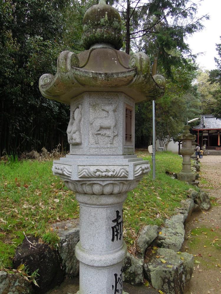 奈良といえば鹿。ここらへんでは鹿は奈良公園のように自由な感じには居ませんが、昔はここらへんも鹿が沢山いはったのかしら。上の灯篭は下部分は新しいですね。下の石灯篭が天保15年です。