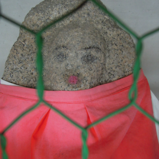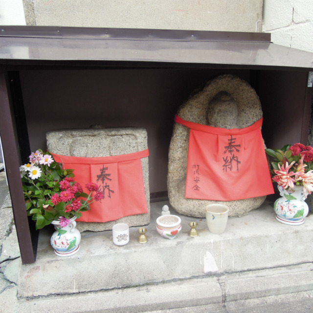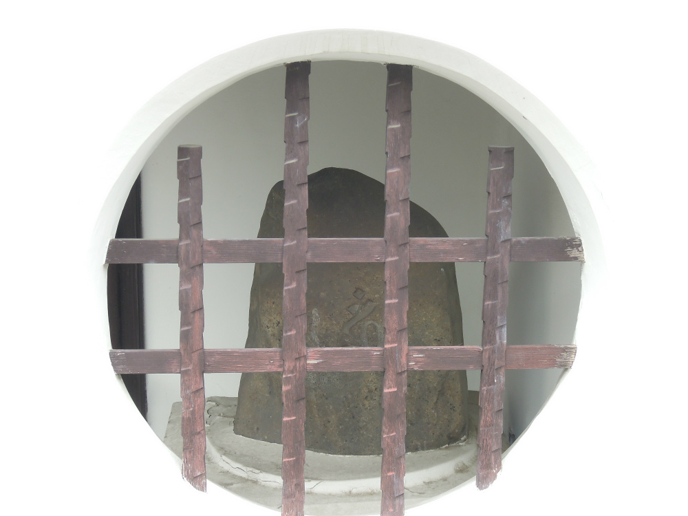 左右には梵語で何やら一文字が刻まれた石碑があります。